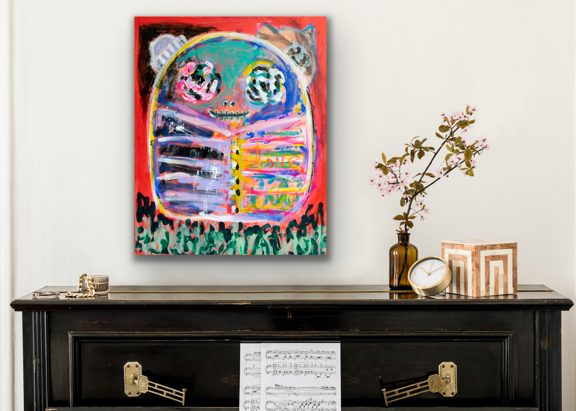 Short for “totally chilling”, Totchi represents a state of mind: a reminder to stay peaceful and optimistic no matter the circumstances. This character was created as an interpretation of Charlie Ramirez himself, but his meaning is what makes him so popular, and since his creation, he has turned into an international peace icon. Totchi began to spread his message to the public in 2008; Ramirez would draw Totchis on his surfboards and graffiti urban spaces with Totchi paste-ups and Totchi tags.A unique element about these works is that the artist continues to implement the paste-up methods on many Totchi canvases and paints over them, creating a fusion which alludes to Totchi’s beginnings. Although this character’s art-historical origins lead back to urban-art and graffiti, Totchi canvases and sculptures have been exhibited in both national and international spaces.